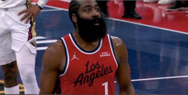 到了第二节,哈登才真正开始发力,先是连续助攻队友吃饼,自己也在弧顶出手三分,不仅球进,还造成了对手的垫脚,裁判认定米西一级恶意犯规。哈登罚球打成3+1后,还是快船的球权,登哥又助攻莱昂纳德篮下得分,一个回合,哈登制造6分,一举将比分拉开。